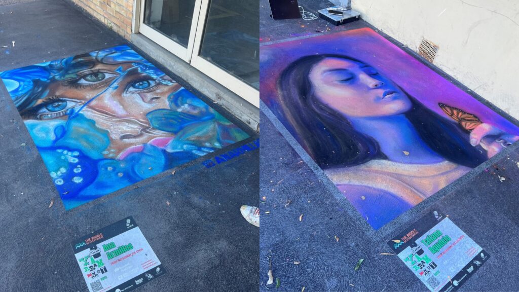 Artist Tatiana (right drawing) from Columbia had never used chalk in her art until this festival opened a new door for her.