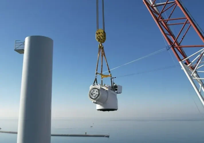 - Turbine installation – Turbine components are pre-assembled at port, transported to site and installed on the foundations using an installation vessel.