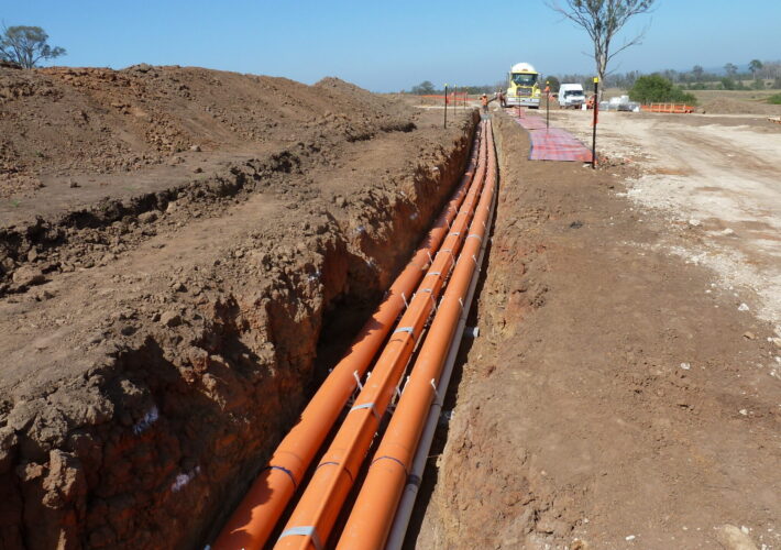 This involves drilling bores and installing ducts underground through which the cables are then pulled and housed.